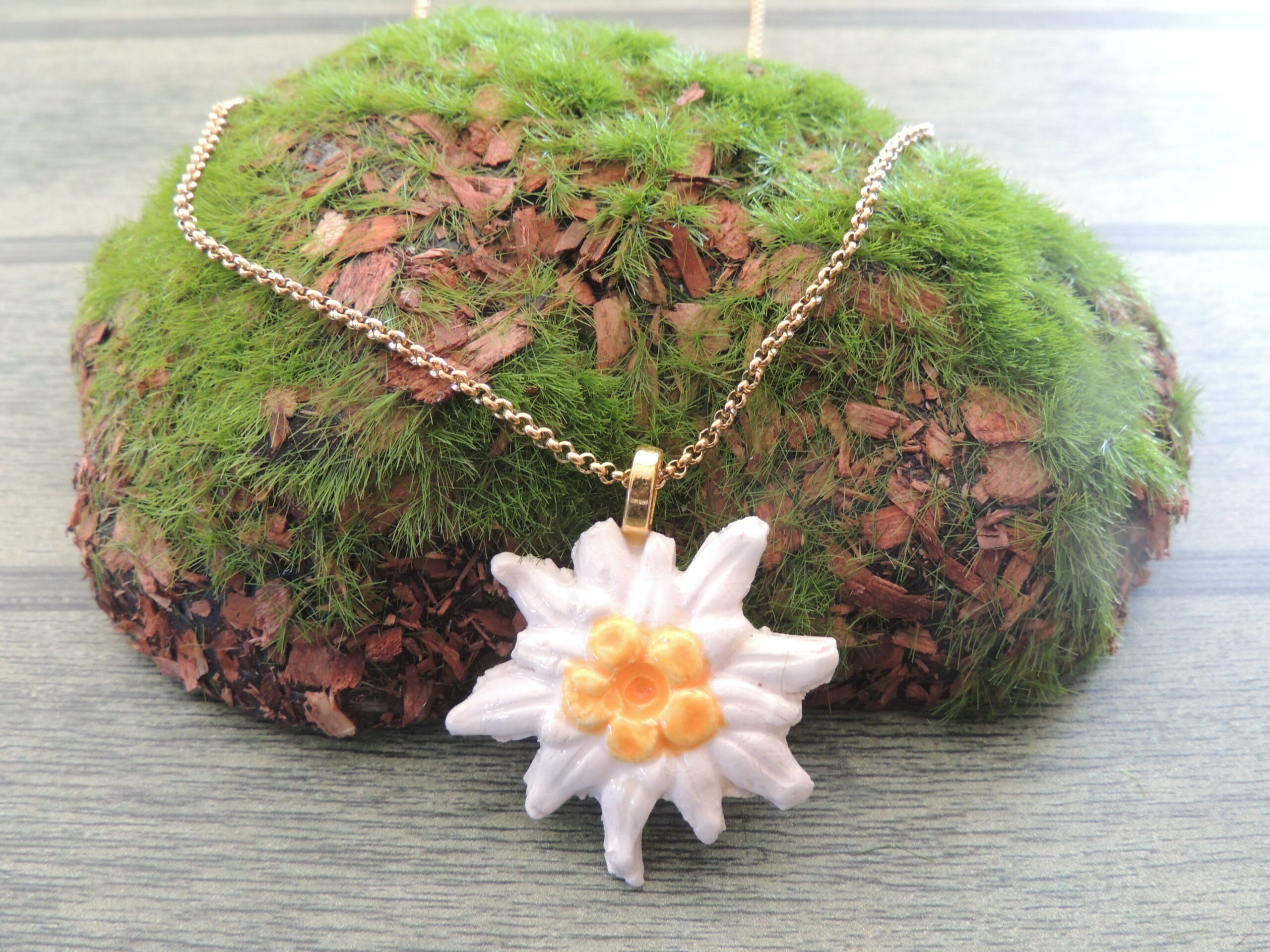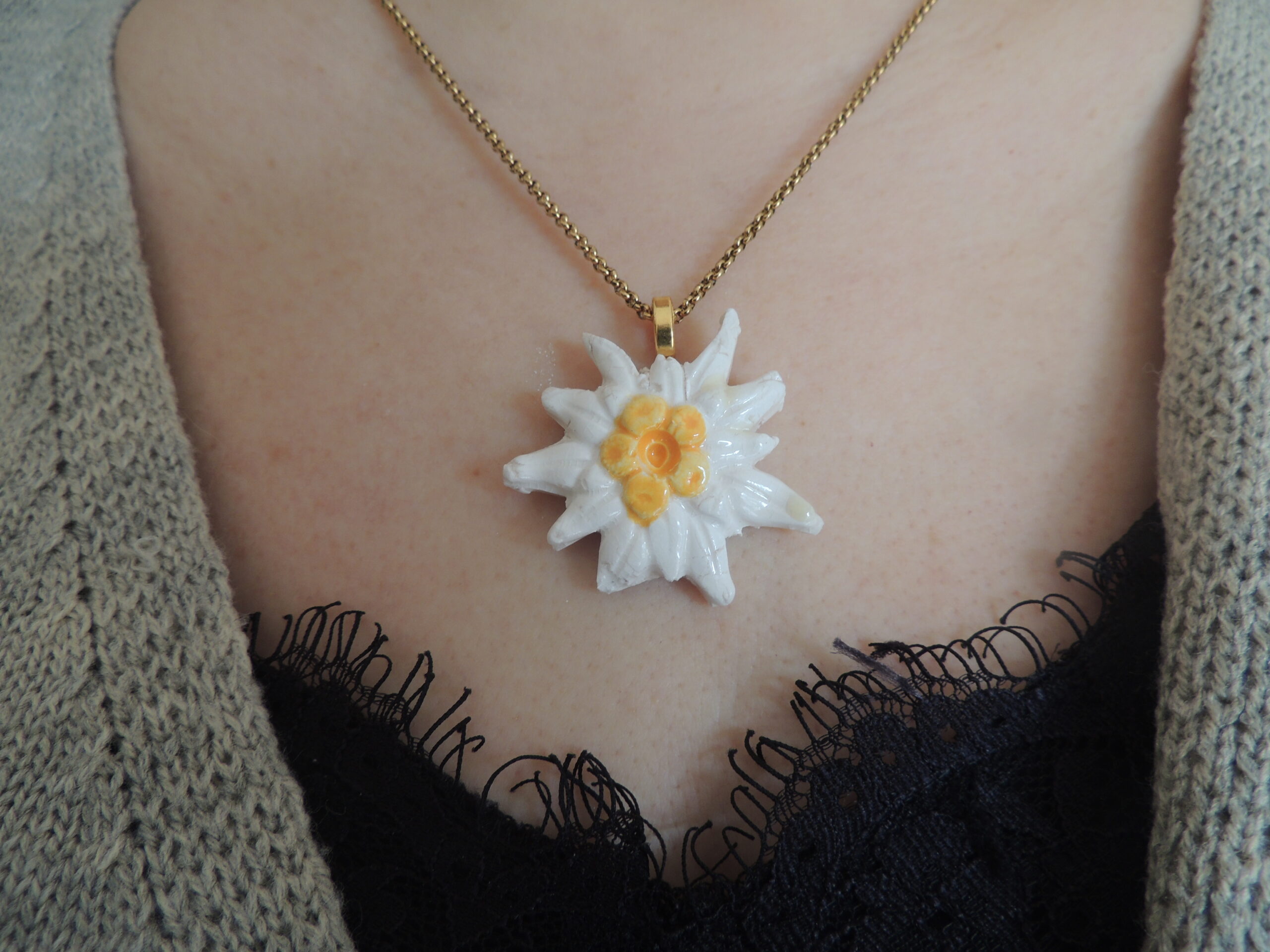 Inspiré de nos beaux sommets alpins, ce collier capture la beauté sauvage de l’edelweiss. Chaque pétale est travaillé pour refléter la délicatesse et l’authenticité de cette fleur emblématique, offrant un bijou raffiné et naturel.